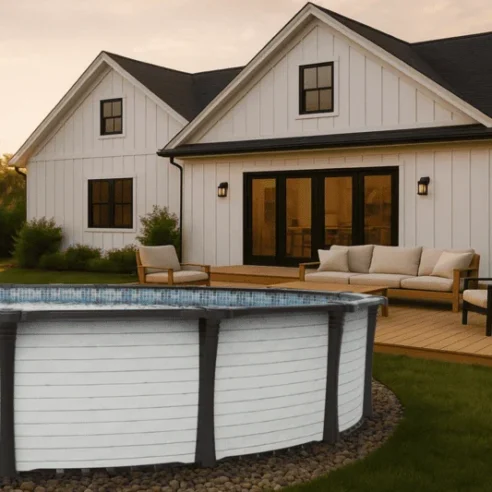 Piscine hors terre en résine conçue pour offrir durabilité, confort et plaisir de baignade dans votre cour arrière. Sa structure robuste et son design intemporel en font une solution idéale pour profiter pleinement de l'été en famille ou entre amis.